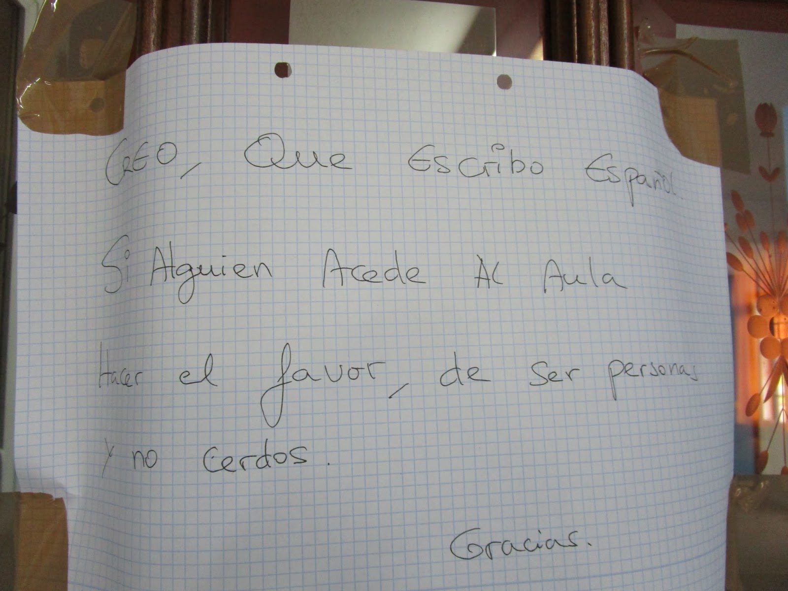 No español creo que tampouco vou aprender muito con esta puntuación, esas maiúsculas e o " acede " e " hacer el favor ". E para máis chiste o escrito está na porta dunha biblioteca dun centro cultural.