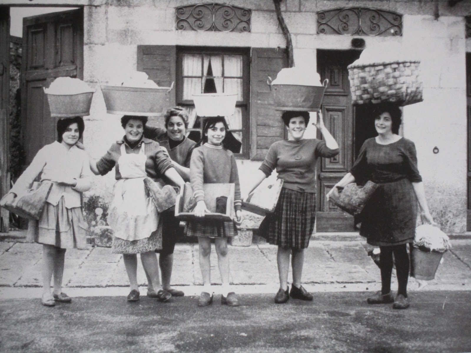 Onte foi o día internacional das mulleres e o centro de Vilaguindastre estaba adornado con fotos antigas da primeira alcaldesa, concelleira, de mestras, unha pianista, etc. Tamén había fotos de vendedoras e faltaba esta foto de lavandeiras que viña ben a conto.