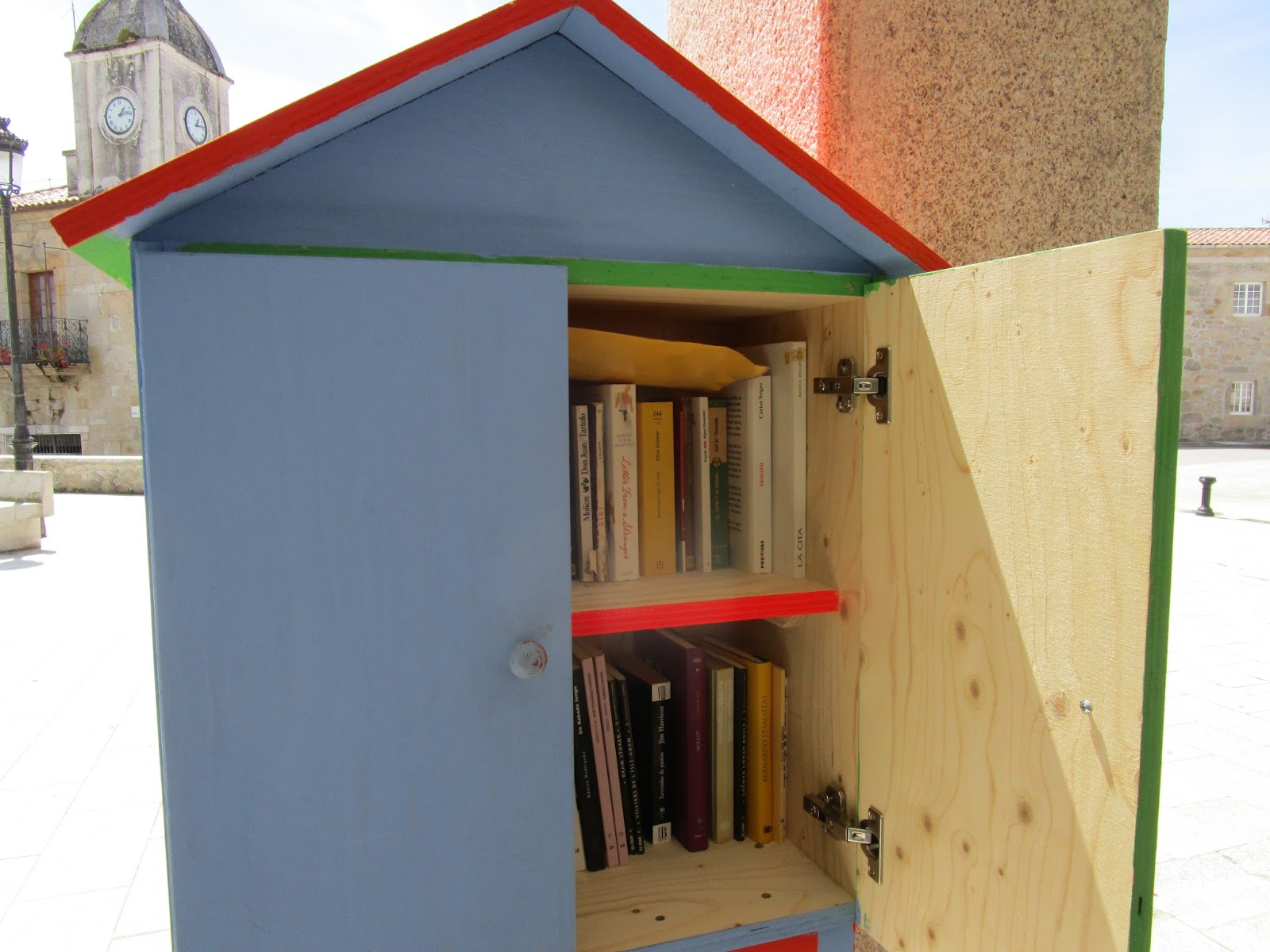 Fomos á capital do concello e na praza teñen unha novidade: un caixón con libros para nenos e adultos en español, inglés e galego. Eu collín prestado " Un sábado longo " e a ver que tal.