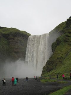 Despois do almorzo do día seguinte seguimos viaxe. Paramos en Selfoss onde eu cría que había unha fervenza ( foss é fervenza en islandés ) pero non a había. Mercamos cousas no Bonus, o supermercado do porquiño que é o máis barato de todos os da illa e tiramos cara o leste. Paramos a xantar nunha gasolineira en Hella e probei un bocata de año delicioso. A partir de aquí xa se empezaban a mirar fervenzas aquí e acolá. É lóxico, nós iamos pola estrada 1 que bordea toda a illa e vai pola plataforma mariña e abeiradas están as alturas cos glaciares que evacúan auga dende esas alturas en forma de fervenzas. Paramos na de Seljalandsfoss e Xela atreveuse a pasar por detrás comigo. Para animar a Xela díxenlle que esta freixa era a ducha dos dinosaurios. Empapámonos pero estivo mui ben; non todos os días pasas por detrás dunha fervenza como nas películas !.
