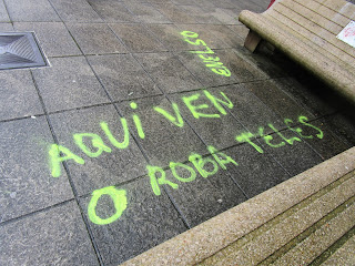 Tamén puidemos entrar nunha casa vella, vella, que tiña ese cuarto de baño da foto cos casulos que servían para limpar as pousadeiras... e Leo preguntando pola tele !.
