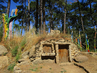 Indo a mollarse descóbrense lugares como a aldea Grobbit na illa da Toxa. Son cinco casiñas nun parque infantil nun monte da illa. Os nenos entraron abraiados polo silenzo do lugar onde eramos os únicos habitantes. Petamos nas portas e escuitamos a ver se había alguén detrás delas pero nada. Xa explican no panel informativo que os Grobbits viven nas augas termais do balneario e que volven á súa aldea por un túnel que dá ao pozo da aldea. O que non din é cando se atopan nas súas casas. Xela quedou con gañas de coñecelos e fixo un debuxo e ditou unha carta para eles. O Leo desconfía máis de que sexa mentira e di que é un truco para que a xente veña ao parque en cada época do ano.